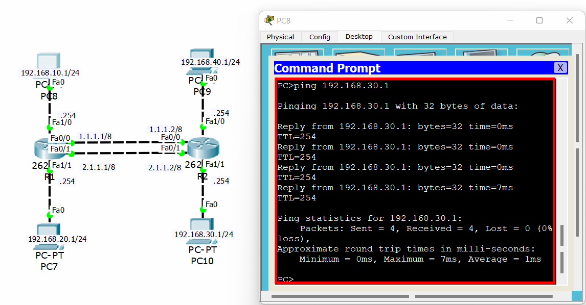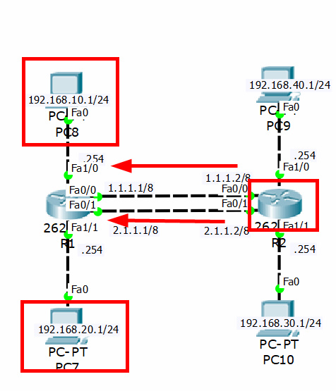 R2는 PC7, PC8 네트워크 주소를 모른다. 그렇기 때문에 설정을 해줘야 하고