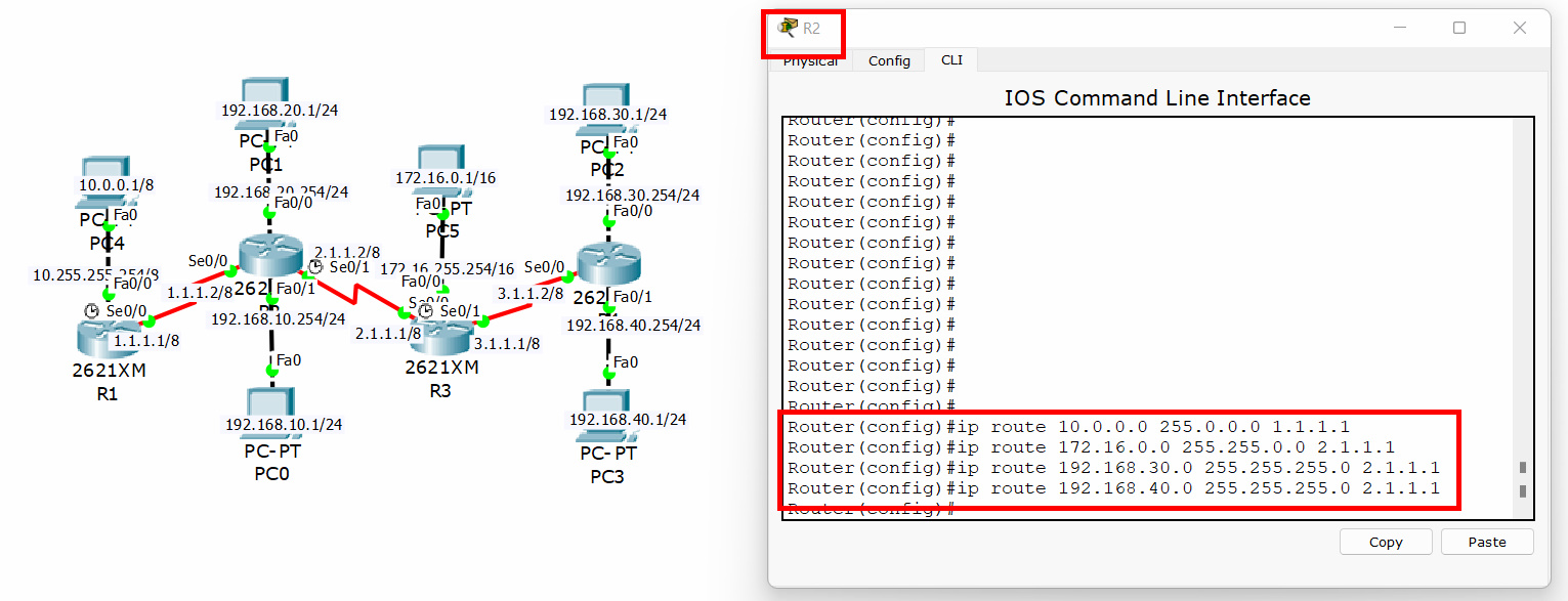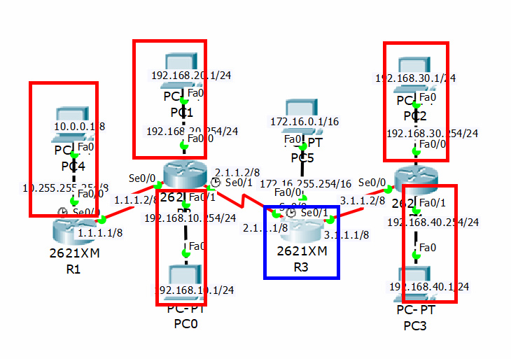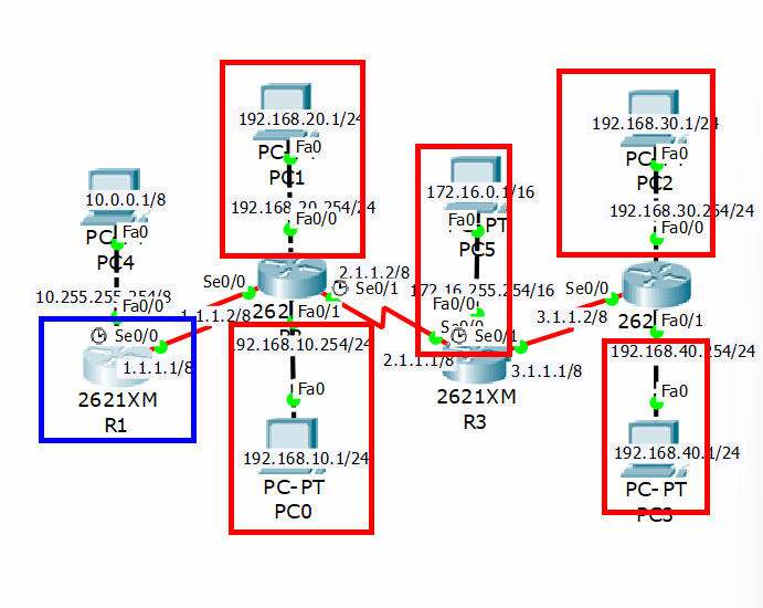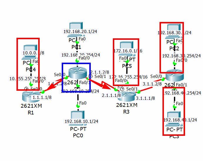 파란색 R2는 빨간색으로 나타나있는 PC의 네트워크 대역대의 주소를 모른다.