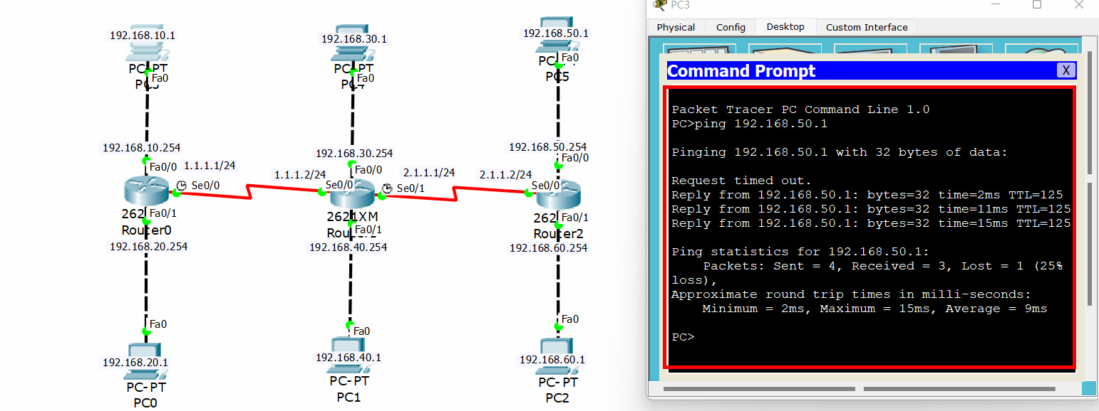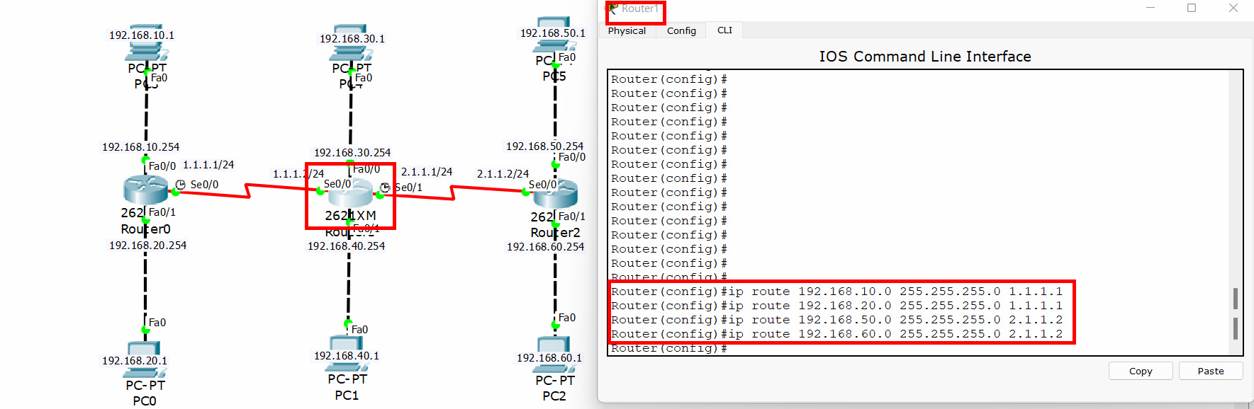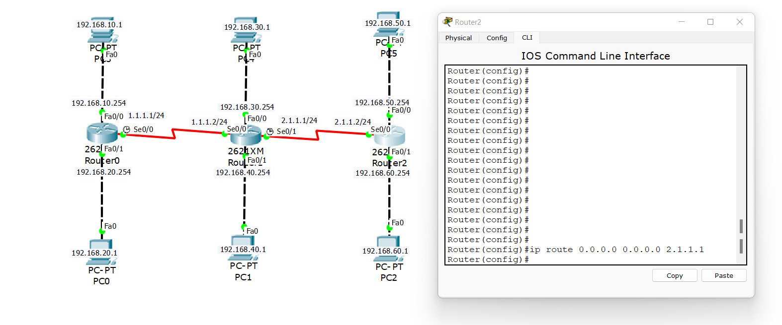 이 문제는 Default & Static Route 사용하여 모든 PC가 통신 가능하도록 하면 된다.