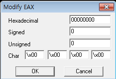처음 EAX 값을 확인해 보면 0 인걸 확인 할 수 있다.