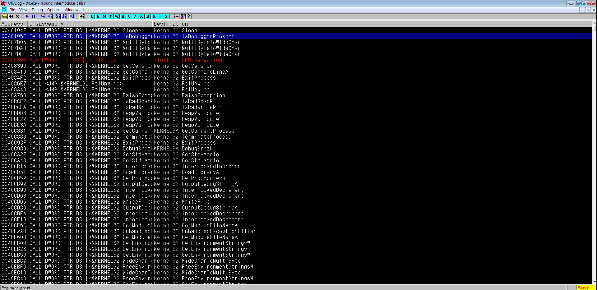 찾아보니 'IsDebuggerPresent' 가 수상하다