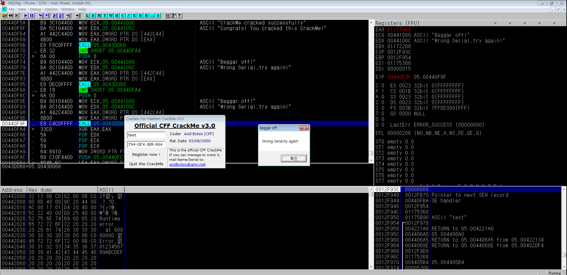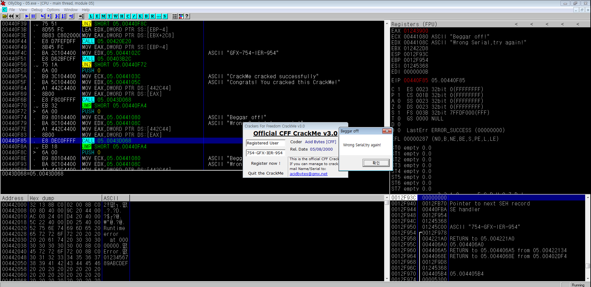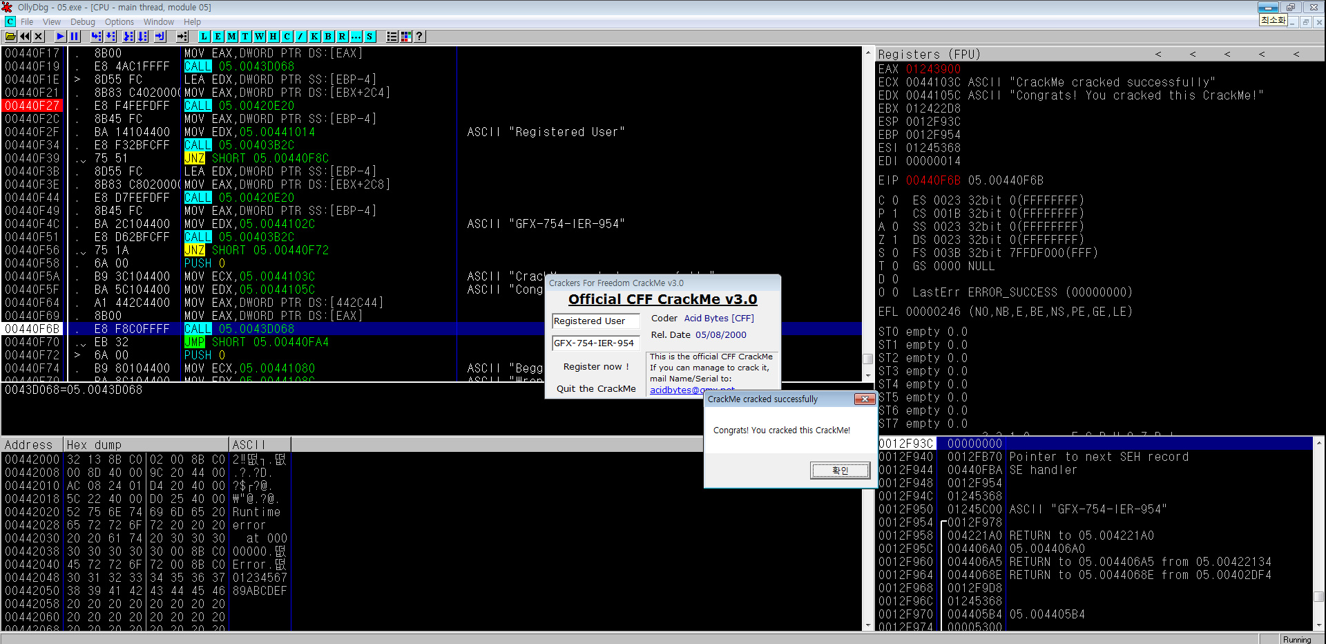 그러면 아까 이름을 알아냈듯이 시리얼 키도 알아내서 정답을 입력해 보자