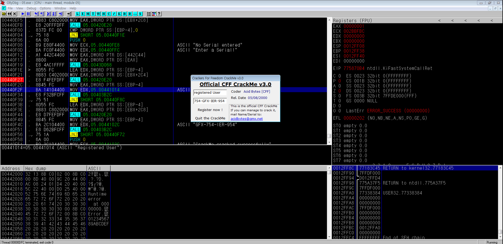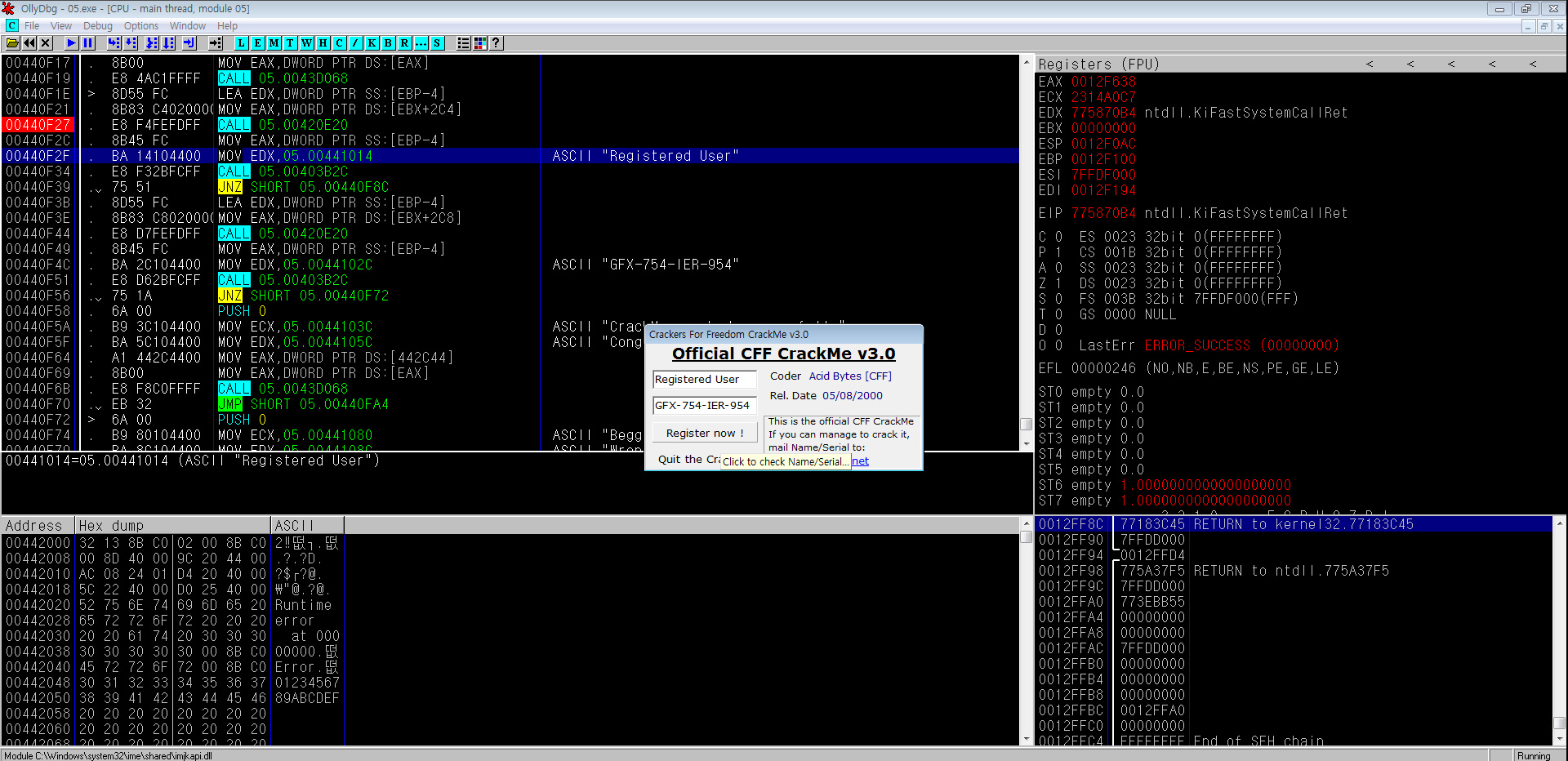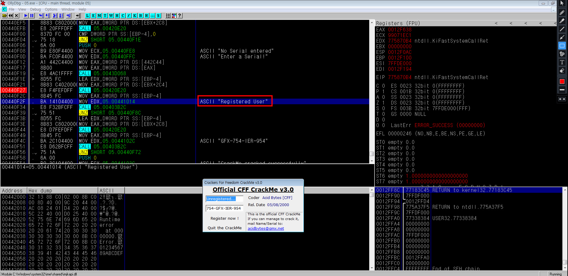 그러면 아까 이름을 알아냈듯이 시리얼 키도 알아내서 정답을 입력해 보자