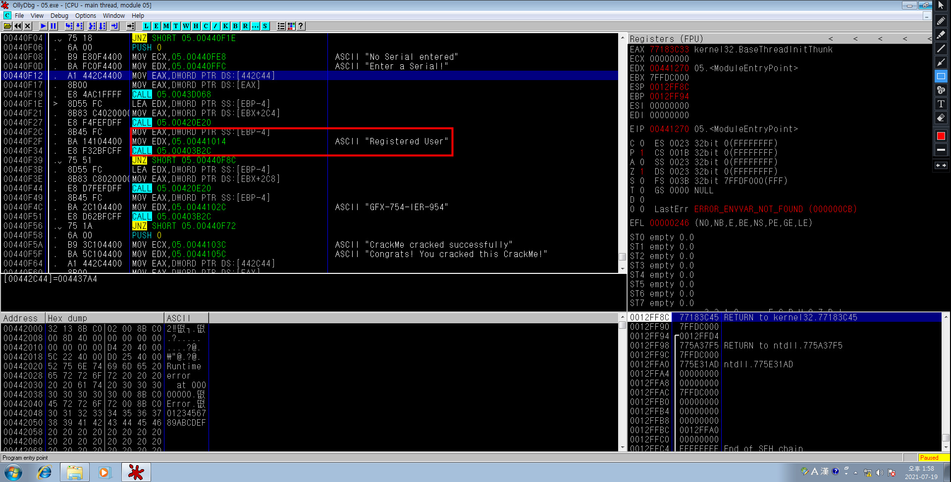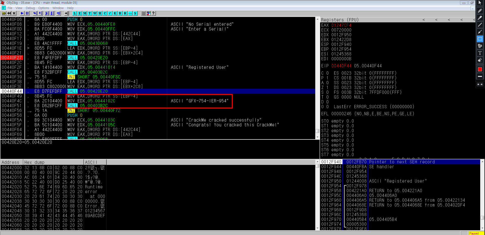 계속 실행하다 보면 시리얼 키가 맞는지 확인하는 코드를 볼 수 있다.