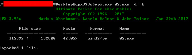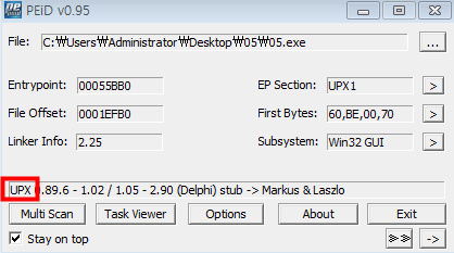 UPX로 패킹 되어 있는 걸 확인할 수 있다.