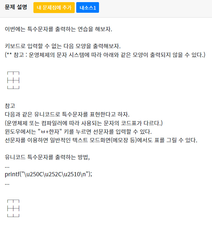 이번 문제는 유니코드 특수문자를 출력하는 문제이다.